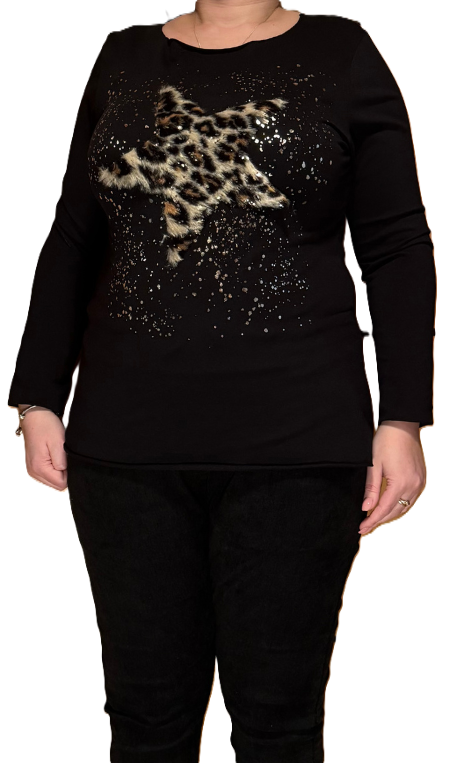 Črna majica na dolge rokave z zvezdo iz mehkega materiala.