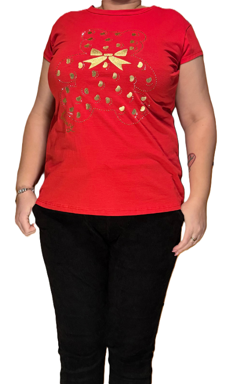 Rdeča majica s potiskom medvedka.