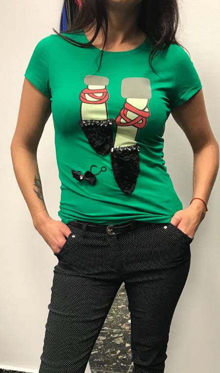 Zelena majica, z motivom balerink. Velikost L/XL, ožji kroj.