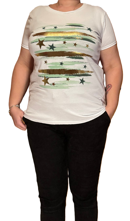 Bela majica s potiskom.