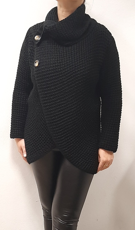 Pulover z ovratnikom in dekorativnimi gumbi.